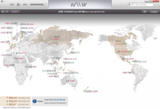 김재중 아이튠즈 순위 지도. /씨제스엔터테인먼트