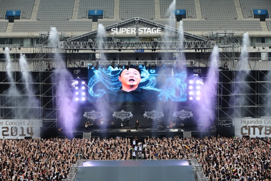 싸이는 9일 성산동 서울월드컵경기장에서 열린 음악 축제 '현대카드 슈퍼콘서트-시티브레이크 2014'에 출연했다. 그는 전설적인 헤비메탈 밴드 오지 오즈번의 공연에 앞서 오후 6시 메인 무대인 '슈퍼스테이지'에 올랐다.