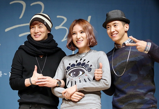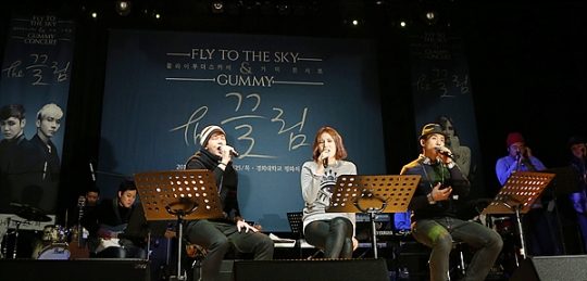 R&B 듀오 플라이투더스카이(환희·브라이언)와 감성 디바 거미가 만났다. 14년이라는 오랜 우정을 자랑하는 세 사람은 오는 23~25일 서울 경희대학교 평화의 전당에서 합동콘서트 'THE 끌림'을 개최한다. 친구로서 사적인 자리가 아닌 가수로서 공연을 앞둔 이들의 모습은 어떠할까. 11일 오후 서울 강남구 청담동 일지아트홀에서 기자간담회를 열고 하모니를 만들어가는 과정을 공개했다.