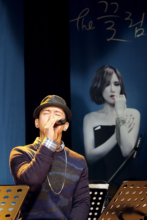 이날 기자간담회에 앞서 플라이투더스카이와 거미는 '더 끌림' 연습 장면을 무대 위에 올렸다. 세 사람은 기타·드럼·키보드 등 세션, 네 명의 혼성 코러스와 함께 무대에 올랐다. 모두들 마치 실제 공연 연습을 하러 온 듯 편안한 옷차림이었다.