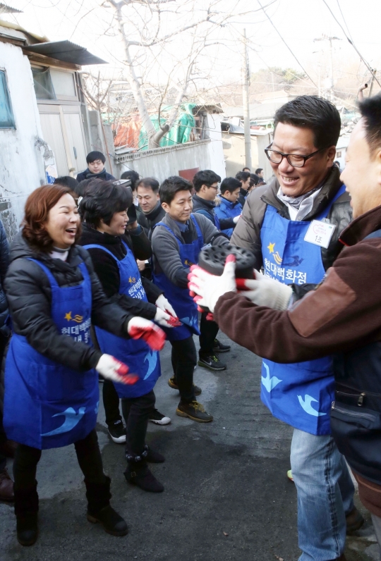 현대백화점그룹은 4일 오전 서울 삼성동 무역센터점에서 2016년 그룹 합동 시무식을 마친 뒤, 곧바로 서울시 노원구 중계본동 백사마을을 찾아 '연탄 나눔 봉사 시무식'을 진행했다.