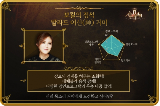 음악예능 '보컬전쟁 : 신의목소리'는 기존의 음악 경연 쇼들과 다르게 아마추어 실력자가 프로 가수를 직접 지목해 오로지 노래실력만으로 일대일 대결을 펼치는 프로그램이다. 앞서 제작진 측은 국내 정상급 가수군단을 두려움에 떨게 할 정도의 실력을 지닌 아마추어 실력자들이 대거 등장해 현장 긴장감을 고조시켰다고 밝혀 시청자의 기대감을 더욱 높이고 있다. 10일 오후 방송예정이다.