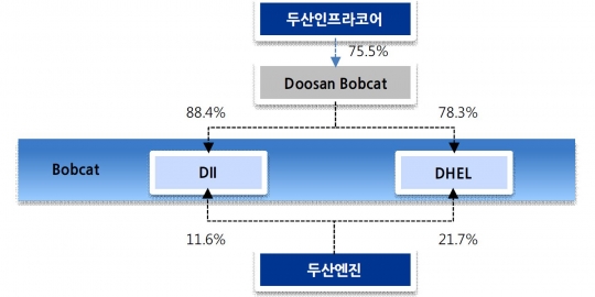 두산인프라코어는 2014년 지주회사인 두산인프라코어밥캣홀딩스를 국내에 설립했고, 2015년 11월 사명을 두산밥캣으로 바꿨다. 또 2015년 전환우선주(CPS) 발행을 통한 프리(Pre)-IPO로 두산인프라코어의 두산밥캣 지분율은 75.5%가 됐다.