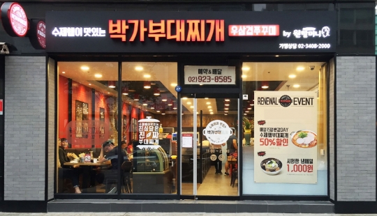 부대찌개 프랜차이즈를 대표하는 '박가부대찌개'는 41년간 이어온 '원할머니보쌈·족발'로 유명한 원앤원㈜의 브랜드다. 박천희 대표이사의 성을 딴 '박가부대찌개'는 자극적인 맛으로 건강에 좋지 않은 부대찌개라는 편견을 없애고자 100% 사골육수와 소고기를 그대로 우려낸 진한 국물을 선보였다. 대표이사의 이름을 내건 만큼 참나무에 훈연한 엄선된 국산 돈육 수제햄을 넣어 이전에는 없던 건강한 부대찌개 바람을 불러 일으키고 있다.