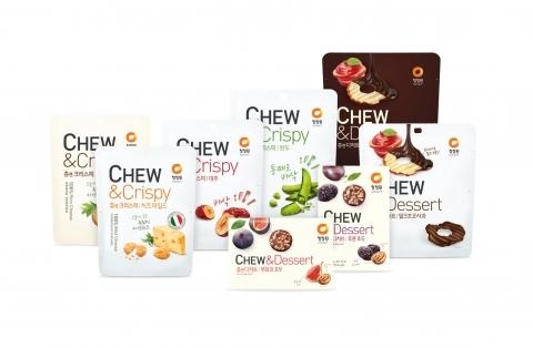 대상청정원의 츄앤시리즈는 첨가물 없이 자연재료를 그대로 건조해 만든 원물 간식이다. 첫 제품인 '고구마츄'가 인기를 얻으면서 대추, 군밤, 감 등으로 제품군을 확대했다고 23일 밝혔다. 최근에는 몸에 좋은 견과와 과일을 동시에 즐길 수 있는 '츄앤디저트 프룻앤넛츠'라인으로 '푸룬호두'와 '무화과호두'도 내놨다.