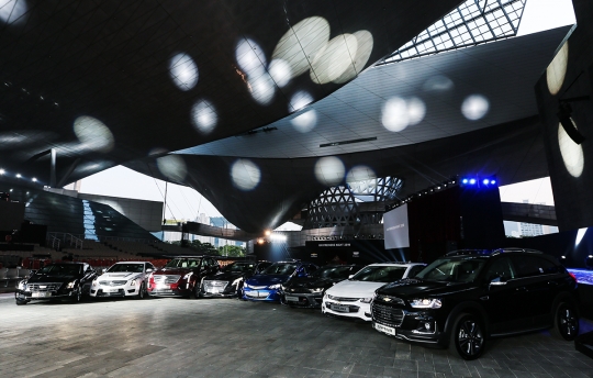 지엠이 지엠 프리미어 나이트 행사를 통해 쉐보레와 캐딜락의 제품들을 공개했다. 캐딜락 ATS쿠페, ATS-V, XT5, CT6, 2세대 쉐보레 볼트, 신형 카마로 SS, 올 뉴 말리부, 캡티바(왼쪽부터).