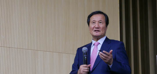 윤증현 전 기획재정부 장관이 지난 11월29일 서울 역삼동 한국과학기술회관에서 열린 '휴넷골드명사초청특강'에서 강연을 하고 있다. /김승호