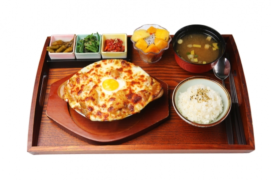 모든 단품요리는 메인메뉴와 밥, 된장국, 3가지 기본반찬, 디저트 과일로 구성, 쟁반 하나에 정갈하게 차려져 나온다.
