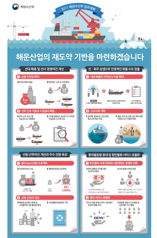 해양수산부는 6일 정부서울청사에서 황교안 대통령 권한대행 국무총리 주재로 열린 정부업무 합동보고회에서 이같은 내용을 담은 2017년도 업무계획을 발표했다.