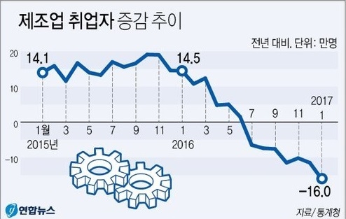조선·해운 등 구조조정 여파로 제조업 취업자가 16만명 감소한 영향이 컸다.
