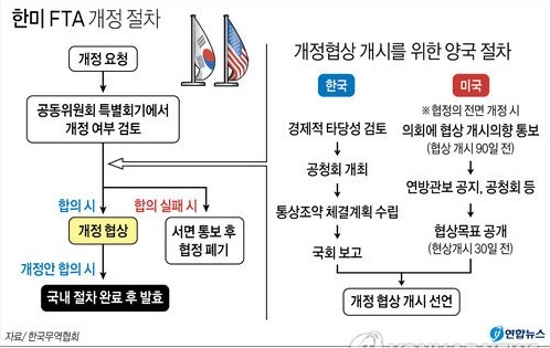 개정협상 개시를 위해서는 한국은 통상절차법, 미국은 무역촉진권한법(TPA)에 따라 관련 절차를 밟아야 한다.