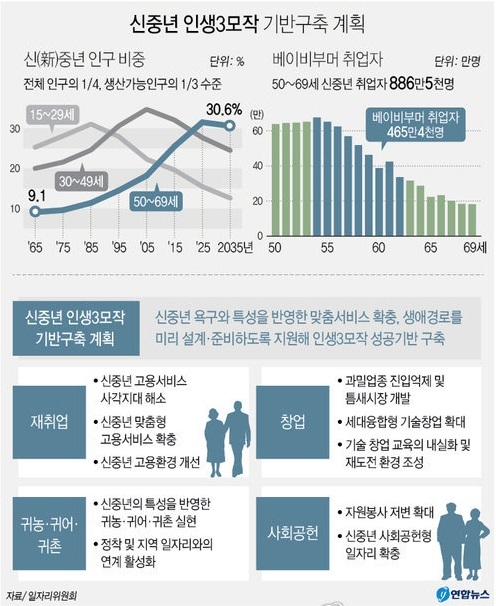 일자리위원회는 8일 열린 제2차 회의에서 '신(新)중년 인생 3모작 기반구축 계획'을 의결했다.