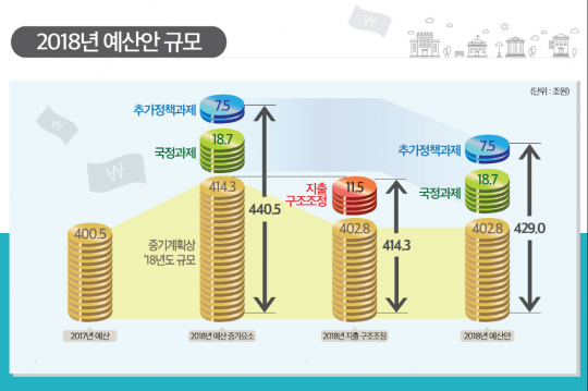 문재인 정부가 처음 편성한 내년 나라 예산이 429조원으로 확정됐다.