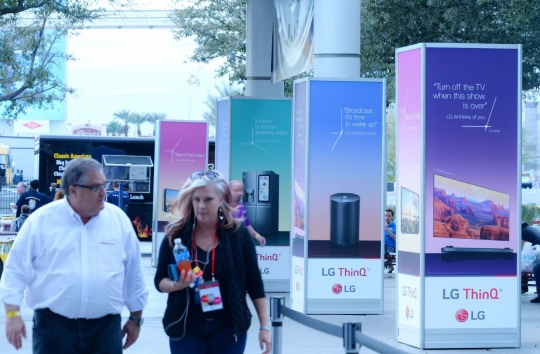 LG전자가 9일(현지시간)부터 미국 라스베이거스 컨벤션센터(LVCC)에서 열리는 세계 최대 가전전시회 'CES 2018'에 앞서 글로벌 인공지능 브랜드인 'LG ThinQ'의 옥외광고를 선보이고 있다. LG전자는 이번 전시회에서 'LG 씽큐(ThinQ)'를 적극 알린다는 계획이다.