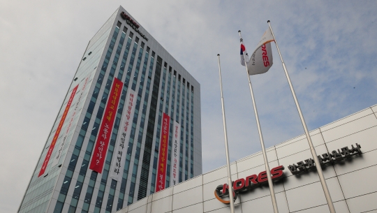 한국광물자원공사 본사 건물에 공사노조가 설치한 구조조정 반대 현수막이 걸려있다./한국광물자원공사노동조합