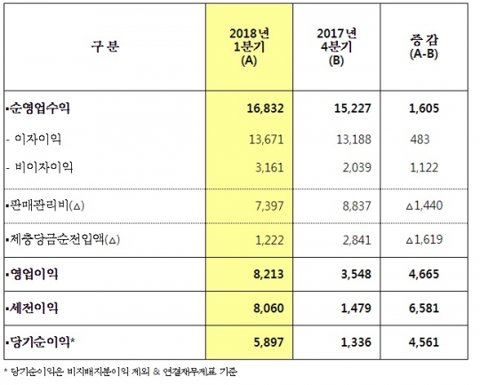 우리은행 2018년도 1분기 손익실적./우리은행