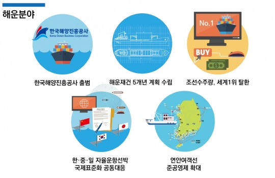 해운분야에서는 침체된 해운산업 재건을 위한 한국해양진흥공사 출범이 가장 주목 받았다. 올해 7월 5일 공식 출범한 공사는 선박 터미널에 대한 투자, 보증 등의 금융업무와 함께 해운거래 관리·지원, 친환경선박 대체 지원, 한국해운연합 지원 등 종합적인 업무를 수행하게 된다.