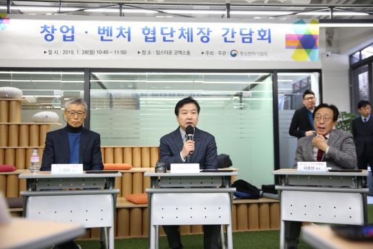 홍종학 장관은 28일 서울 역삼동 팁스타운에서 벤처기업협회, 벤처캐피탈협회, 메인비즈협회, 엔젤투자협회 등의 단체장들과 간담회를 가진 자리에서 "개방형 혁신은 새로운 국가전략이자 4차산업혁명시대로 가야하는 청사진"이라면서 "우리나라가 재도약하기 위해선 개방형 혁신이 중요한데 관련 정책을 통해 이를 활짝 꽃피우는게 나의 일"이라고 생각한다고 전했다.