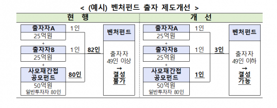 사모재간접 공모펀드의 벤처펀드 투자를 활성화해 일반, 소액투자자의 벤처투자 시장 참여도 확대한다. 다수의 일반 투자자를 1명의 출자자로 간주해 사모재간접 공모펀드의 벤처펀드 출자 여건을 마련하는 것이다.