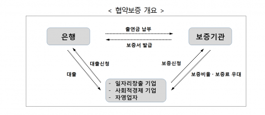 은행권이 협약보증을 통해 1000억원을 출연하면 기보와 신보가 이를 활용해 관련 기업들에게 보증을 통해 지원하는 구조다.