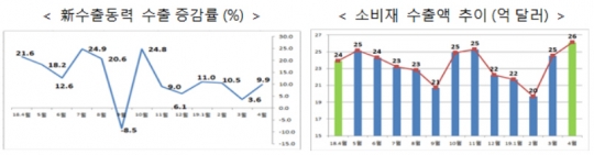 신수출동력 수출증감률과 소비재 수출액 추이/자료=중소벤처기업부