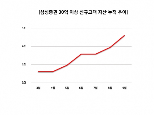 삼성증권 30억 이상 신규고객 자산 누적 추이
