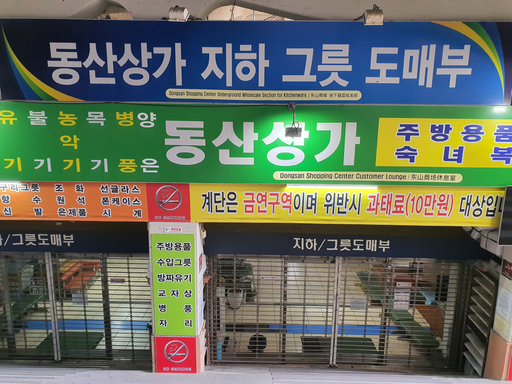 1층에서 2층으로 올라가는 동산상가와 지하층인 동산상가 그릇 도매 주방용품도 아에 문을 닫고 2지구 의류상가 에스컬레이터는 타는 사람이 없이 혼자 가동되고 있다. 2층 한복 이불 도매상가도 5지구인 그릇, 의류, 잡화 역시 손님이 없어 주인만 자리를 지키고 있다. 3, 4층도 문만 열어났을 뿐 손님이 거의 없었다.