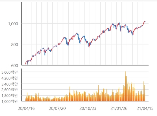 15일 한국거래소에 따르면 이날 코스닥 지수는 차익 실현 매물이 출현하며, 전 거래일 대비 0.52포인트(0.05%) 하락한 1013.90에 장을 마감했다. 6거래일 연속 상승에 따른 숨고르기 양상을 보여준 셈이다. 코스닥 지수는 2000년 9월 14일(1020.70) 이후 종가 기준 20년 9개월 만에 기준지수 1000포인트를 회복했다.