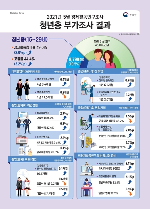 이들의 취업 소요기간(임금근로자 기준)은 10.1개월로 1년 전보다 0.1개월 증가했다.