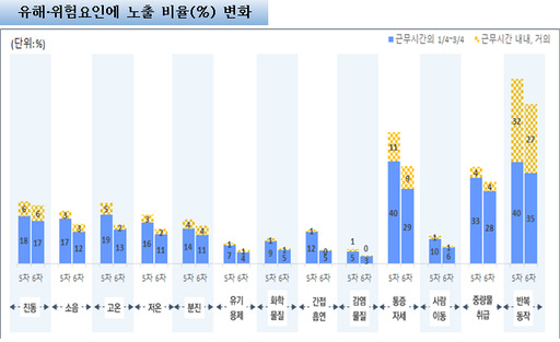 이와 달리 근무 도중 진동이나 소음 등 유해·위험요인에 노출됐다는 응답은 2017년에 비해 감소한 것으로 나타났다.