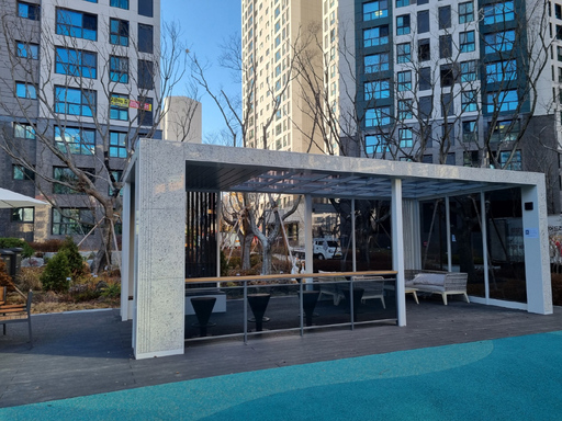 단지 곳곳에는 '광명 푸르지오 센트베르'만의 조경이 눈에 띄었다. 팽나무와 놀이 공간 등이 설치된 '케렌시아 가든'을 비롯해 지상층에는 정원과 티하우스 등이 조성됐다. 정원 주변에는 테이블과 벤치가 놓여 있어 입주민에게 휴게공간까지 제공하고 있었다.