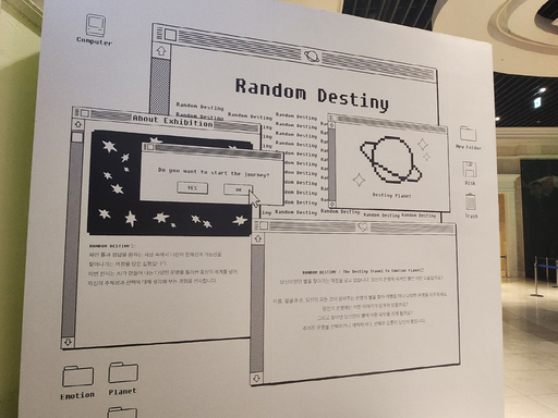 전시는 운명의 행성지로 떠날 수 있는 여정표를 받는 것으로 시작된다. 안내원의 설명에 따라 '랜덤 다이버시티' 앱을 다운받아 실행한 뒤 QR코드를 스캔하면 입장할 수 있다. 입장 후 이름, 생일을 입력하면 첫 번째 행성인 '탄생의 행성(BIIRTH DESTINY)'에서 사주 운세를 확인할 수 있다. 프린터를 통해 개인이 입력한 태어난 년, 월, 일, 시에 해당하는 운세가 출력되어 나온다. 현재 상태와 운의 흐름, 주의사항, 재물운, 건강, 조언 등 상세한 내용을 받아볼 수 있다.