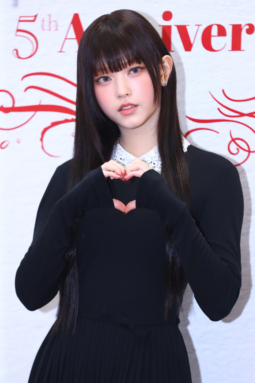 뉴진스가 6일 영등포구 더현대서울에서 열린 현대백화점면세점 오픈 5주년 기념 행사에 참석해 기념사진을 찍고 있다.