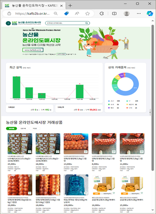 이날 온라인도매시장 1호 거래 품목은 양파였다. 판매자는 전남서남부채소농협, 구매자는 요식사업가 백종원씨가 대표인 더본코리아였다. 더본코리아가 발주한 10톤을 전남 무안의 전남서남부채소농협이 선별 과정을 거쳐 음성 전처리센터까지 직배송한다.
