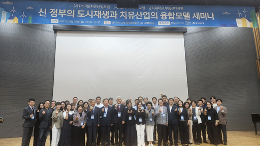 '신정부 도시재생과 치유산업의 융합모델 세미나'가 지난 29일 서울 명지대학교 방목학술정보관 국제회의장에서 개최됐다. 이번 행사는 (사)스마트치유산업포럼, (사)도시재생전략포럼, 명지대학교 부동산대학원이 공동으로 주최·주관했다.