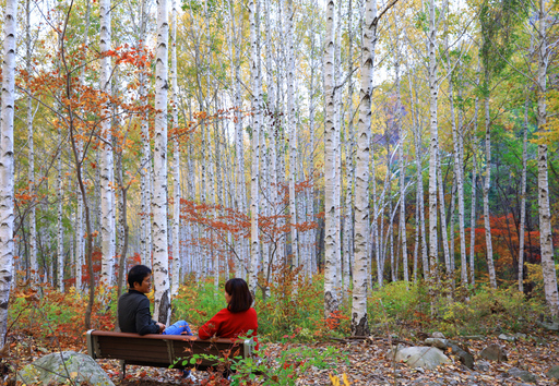 등산로를 따라 전망대로 올라가면 고도 800m를 훌쩍 넘기는 높이에서 자작나무숲 일대를 조감할 수 있다. 빼곡하게 수놓인 나무의 하얀 수피들 사이로 알록달록 피어오른 단풍은 늘상 봐오던 단풍나무들과는 색다른 감동을 선사할 것이다.