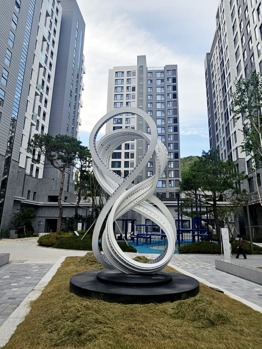 단지 뒤편을 산이 감싸고 있다면 그만큼 단지 자체가 오르막 경사지일 터. 서대문 센트럴 아이파크는 지형의 단차를 입체적인 설계로 오히려 장점으로 바꾸었다. 테라스 하우스는 경사지를 활용했고, 부대시설도 대지 단차를 이용했다. 고저차를 시각적 리듬으로 풀었내 단지 어디에서든 자연과 맞닿은 수평적 조망을 감상할 수 있다. 단지 내에서는 동선이 중앙을 중심으로 좌우로 갈라지고, 북한산 방향으로의 조망이 열려 시야가 확 트인다.