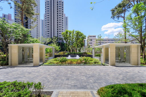 래미안 원펜타스의 조경은 갤러리 포레를 중심으로 단지 내 곳곳에 작은 정원들이 어우러져 있다.