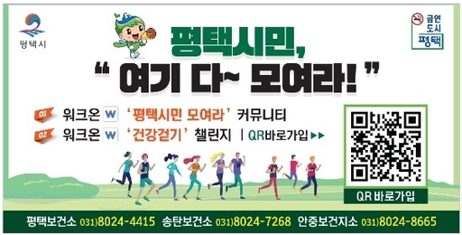 평택시는 시민들의 건강증진을 위해 스마트폰 하나로 누구나 쉽게 참여할 수 있는 모바일 건강 커뮤니티 '평택시민 모여라(워크온)'을 활발히 운영 중이라고 밝혔다.