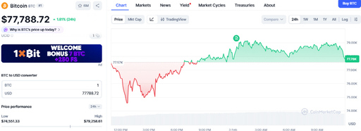 3일 비트코인, 1BTC당 7만7788달러…작년 10월 최고가 比 38% ↓