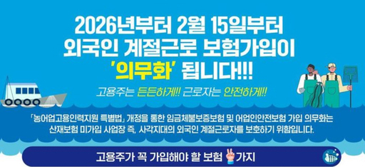 또 '농어업인 안전보험'은 근로 계약의 효력발생일부터 15일 이내에, 오는 15일부터 입국하는 외국인 계절근로자는 입국한 날부터 15일 이내 '상해보험'에 가입해야 한다.