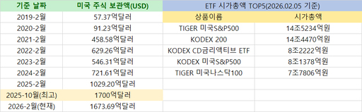 이 같은 변화는 한국 투자자의 포트폴리오에서도 확인된다. 국내 ETF 시장에서는 순자산 10조원을 넘는 초대형 상품이 잇따라 등장하는 가운데, 지난해 말 기준으로 ETF 순자산 1위 상품 역시 미국 S&P500 지수를 추종하는 미래에셋증권의 'TIGER 미국S&P500'이 차지했다.