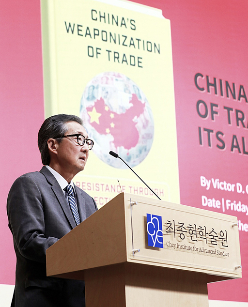 빅터 차 미국 전략국제문제연구소(CSIS) 지정학·외교정책 담당 소장이자 조지타운대 석좌교수는 지난 6일 서울 강남구 최종현학술원에서 열린 특별강연에서 최근 출간한 저서 '중국의 무역 무기화'를 소개하며 중국의 경제적 강압이 이미 체계적이고 반복적인 전략 단계에 들어섰다고 밝혔다.