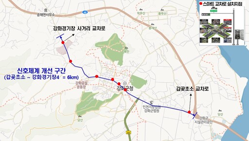 좌회전 감응신호는 차량이 감지될 경우에만 좌회전 신호를 부여하는 방식으로, 강화 1개 교차로와 영흥도 3개 교차로에 적용됐다. 그 결과 해당 교차로의 평균 지체 시간은 38.4% 감소해 15.1초에서 9.3초로 개선됐으며, 불필요한 좌회전 신호 부여 횟수도 47.3% 줄어든 것으로 조사됐다.