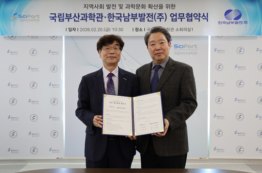 한국남부발전이 국립부산과학관과 손잡고 지역 과학교육 활성화에 나선다. 남부발전은 지난 20일 국립부산과학관과 지역 과학교육 활성화를 위한 업무협약(MOU)을 체결했다고 밝혔다.