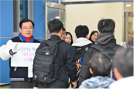 교문 앞은 설렘과 긴장이 교차하는 표정으로 등교하는 학생들로 이른 아침부터 활기를 띠었다. 이현재 시장은 학생 한 명 한 명과 눈을 맞추며 환영 인사를 건넸고, 학생들도 밝은 웃음으로 화답해 현장은 화기애애한 분위기 속에 진행됐다.