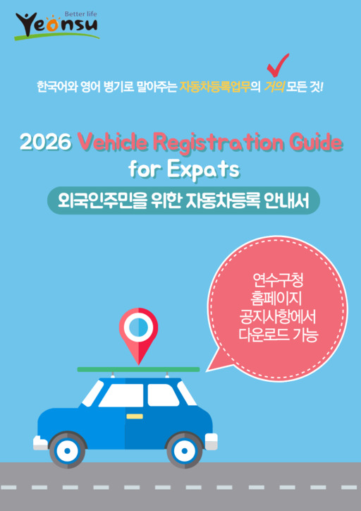 연수구(구청장 이재호)는 지난달 27일부터 인천 자치구 최초로 외국인 주민을 위한 자동차 등록 안내서 '2026 Vehicle Registration Guide for Expats'를 제작해 구청 누리집을 통해 PDF 파일로 무료 배포하고 있다고 밝혔다.