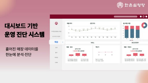설렁탕 프랜차이즈 한촌설렁탕은 매장 데이터를 통합해 운영 상태를 한눈에 파악할 수 있는 '대시보드 기반 운영 진단 시스템'을 구축했다. 해당 시스템은 매출 급감이나 배달 과정에서 발생하는 이슈를 조기에 감지해 본사와 점주가 함께 대응할 수 있도록 지원한다.