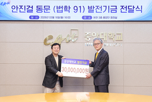 중앙대학교(총장 박세현)는 지난 16일 서울캠퍼스 201관(본관)에서 '안진걸 발전기금 전달식'을 열고 안진걸 동문이 발전기금 3000만원을 전달했다고 17일 밝혔다.