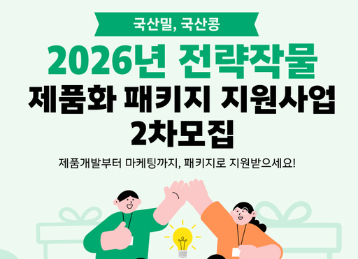 한국농수산식품유통공사(aT)가 '전략작물 제품화 패키지 지원사업'에 참여할 국산밀과 국산콩 품목 사업자 2차 모집을 실한다고 밝혔다. 신청 기한은 이달 27일이다.